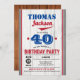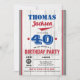 Baseball 40th birthday invitation. Rustic red blue Invitation