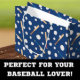 This fun baseball and bat pattern shows the sports equipment in a pattern on dark blue. It makes a great addition to a birthday, Christmas, or other holiday gift of a little boy or girl.