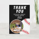 Baseball Ball Black Thank you Coach Photo Card. Baseball thank you coach card with a photo in oval frame, coach name, team name, year and player`s name. Personalized photo thank you card - add your photo into the template. Great thank you card for the baseball team coach!