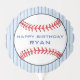 Baseball Ball Boy Happy Birthday Party Balloon. Add your name. The name is in the baseball ball, the background is blue with dark blue stripes. Great for a kid - boy or girl, who love baseball and sport. Birthday balloons for a baseball themed birthday party.