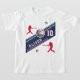 Modern Baseball Ball Player Themed Birthday Guest of honor T-shirt. Celebrate in style with this sleek baseball-themed birthday t-shirt design! Featuring a navy blue, red and white color scheme, bold lettering, and realistic baseball graphics, this sporty design is perfect for any baseball fan. The t-shirt showcases dynamic player silhouettes, a 3D baseball and stripe details. Whether for a kid’s party or an adult baseball lover, this premium and customizable design is a home run for any birthday celebration!