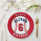 Baseball Ball Themed Kids Birthday Party Paper Plates. Baseball birthday party plates with a custom name and age. Add your age and name.