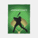 Baseball Batter Design Fleece Blanket featuring the silhouette of a batter against a baseball diamond background with customizable personalization.