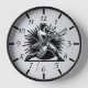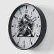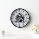 The size of the clock is dramatic and the abstract alcohol ink design is soothing and intricate at the same time. I chose the black frame that adds pop to the blue and gold design. The gold printing would be better in a slightly darker or larger font. I love it and I’m looking for just the right place in ny new apartment. I would recommend this clock for a personal gift or a present. I feel that the quality is excellent for the money! I’m a bit of a clock nut so I’m pretty particular about my purchases. The clock is larger in diameter than many if the clocks I have, so it stands out very well. I think a slightly darker printing color and a moderately larger size would best suit a professional decor or add more impact in a work place item.