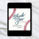 This cute and retro birthday circle thank you card features a baseball. The reverse side features a navy blue background with faux gold star patterns. Personalize it for your needs. You can find matching products at my store.