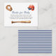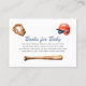 Hit a grand slam with your baby shower guests with these adorable "Books for Baby" enclosure cards. The vintage-inspired watercolor design showcases a baseball glove, bat, and helmet, evoking a sense of nostalgia and sporty fun. Encourage guests to bring a book to help start your baby's library, making each story a cherished keepsake. The elegant script and classic typography are set against a clean white background, with a chic navy and white stripe pattern on the reverse side. These cards are a fantastic way to incorporate your love for baseball into your special celebration.
