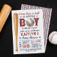 Plain white envelopes are included with paper invitations and will come to fit the invitation size you select. If you don’t need the envelopes, you may choose to not receive them by selecting the dropdown below "Envelopes" and choosing "None." If you’d like to have a design on your envelopes, you can browse all of these available envelopes to find the design that complements your Baseball Boys Baby Shower Invitations.