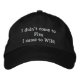 The design was easy to do with a number of options both the hat style, color and so forth. These aren't some printed letters, these are the real deal stitching. The two hats arrived quickly. I've used Zazzle in the past for shirts a number of times and this is the first time for a hat. Zazzle is absolutes the best in every respect; customer service, product selection and results. The embroidery was just right. My artwork was turned into a professional look thanks to Zazzle.