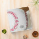 Close up photo of a baseball with red stitching and a wooden bat behind ball. Templates for titles on front and spine and a number on back.
