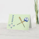 This card has crossed baseball bats on the front and the message "THANK YOU COACH", with a baseball taking the place of the 'O' in YOU and COACH. The background is a pale green color. The cap hanging on the bats has an initial letter ready for you to edit. Inside there is a bouncing baseball and the text is "We couldn't do it without you" - edit this for your own personal message.