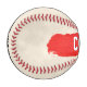 White baseball in Coach Text on red paint stroke with team name on the reverse side.