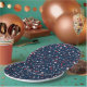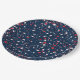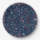 Baseball Confetti, Blue-PAPER PARTY PLATES-Tiny little baseballs created in assorted red, white and blue patterns cover the surface of the number card holder. Punched out confetti dot patterns mix in with the baseballs. The word Boston is written on some of the balls, others have no text. The background is solid blue. This design is also available with assorted background colors. No specific holiday or event is written on the design. It can be used for any baseball themed event. Coordinating mix and match baseball supplies is available. Choose any size/style of Zazzle plates available.