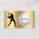 Great business card for any male baseball (softball) fan or player. The front design features a large baseball with a name placed on it like an autograph. That, plus the silhouette of a male batter - all on an elegant gold background. Other information is on the back. When you select “Personalize this design” you will be offered options to easily change the text (wording, plus type font, color, size, position) and to possibly edit the design elements with changes you may want to make.