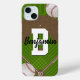 This personalized phone case has a football fans design with a baseball field and two illustrated baseballs. Personalized this phone case with a first or last name and a initial. A great personalized sports gift to give the baseball fan in your life that play card games.