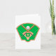 This design is a baseball field. The perspective is looking down on the field. You can see the diamond and then the outfield. Overlaid on the top is two baseball bats crossing each other and a baseball. This baseball field design looks great on these note cards