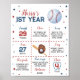 Baseball First Birthday Milestone Poster