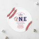 Baseball First Birthday Party Invitations! Celebrate your little rookie with this fun and unique birthday design, created with vintage style baseball background with "ONE" that has a baseball in place of the "O". Add a special touch to your child's special day with these art birthday party invitations!