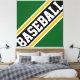 This sporty design features athletic BASEBALL text inside highlighted wide diagonal black, white, and golden yellow orange racing stripes against bold green background. The first and last letters of the text run off the design edges with a dynamic banner effect. The colors and text in this design can be personalized.