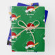 Personalizable christmas gift wrap with baseball theme - 3 sheets. Two sheets feature mistletoe, a baseball diamond, bat and ball, one a Santa hat, the other a baseball cap, the third sheet has red and white candy canes, baseball and a black bow. Background colors we selected are green, blue and a light gray with color lines, but you have the option of changing those. Be sure to add your text at the personalize prompt. Designed for you by HAMbyWhiteGlove
