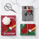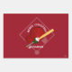 Personalizable christmas gift wrap with baseball theme - 3 sheets. Two sheets feature a baseball diamond, cap, bat and ball, the third sheet has red, green and black complimentary christmas tree graphics paired with a batter and catcher black graphic. green, red and gray Be sure to add your text at the personalize prompt. Designed for you by HAMbyWhiteGlove