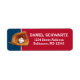 These navy blue, red, and white Bar Mitzvah address labels have a brown baseball glove with a red and white baseball on the left side. They can be used for mailing out any baseball party or event invitations with a baseball or sports theme. There is a sports-style accent font used for the name of the Bar Mitzvah in white with the address printed below in white.