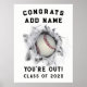 Unique baseball graduation congrats poster for senior team player. Edit text to add grad's name and the year.