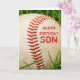 A baseball in the tall summer grass with the words Happy Birthday Son! Perfect for your favorite baseball fan son and totally customizable for you to personalize as you please!