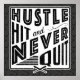 Text reads: Hustle, Hit And Never Quit, with crossed baseball and softball bats icon.
