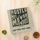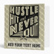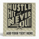 Text reads: Hustle, Hit And Never Quit, with a crossed baseball / softball sticks icon.