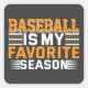 Anyone who loves baseball will love this baseball themed sticker featuring text of gold and white that reads Baseball Is My Favorite Season!