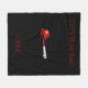 "LET'S PLAY BALL" black personalized fleece blanket with child's name.
