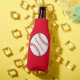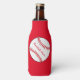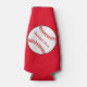 This bottle cooler features red and white baseballs on a red background. The text reads: Baseball Mom. Easily customize the text for a special sports fan or remove entirely. Great for Mother's Day or any time of year!