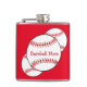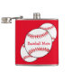 This fun flask features red and white baseballs. The text reads: Baseball Mom. Easily customize the text for a special sports fan or remove entirely. Great for Mother's Day or any time of year!