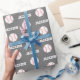 Custom baseball personalized name gray wrapping paper roll for your sports fan! This unique gift wrap features a baseball pattern design. You can change the background color and font style. Perfect for birthday or baby shower gift wrapping.