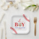 These are Baseball Oh Boy Brown White Baby Shower Paper Plates!