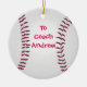 This customizable ceramic ornament has an image of a baseball and says To Coach Andrew. Replace the words with your own custom name or the name of your coach to personalize.