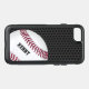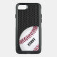 Stylish Otterbox brand iPhone 6 case done in a black metallic mesh look. Graphics of a red and white baseball decorates the bottom right corner, with custom black text ready to personalize.