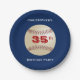 A baseball on a dark blue background decorates this unique and fun party paper plate. Although default says "35th Birthday Party", you can easily change the name, # of years, and event. Matching napkins available at my zazzle store, SocolikCardShop. Baseball fans will love it! All Rights Reserved © 2015 Alan & Marcia Socolik.