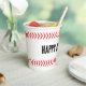 Make your own baseball party paper cups with your own custom text message. Just click to personalize the template and type anything you want in the custom text box. You can leave the placeholder text, "Happy Birthday" as it is, or change it any way you want. These are great for baseball themed birthday parties, team banquets and other special events.