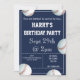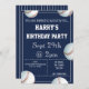 Baseball themed party invitation, editable so you can change the greeting, name, date/time, venue and RSVP details with striped back, available in other colours.