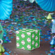 This party favor box is shown in a sports baseball print.