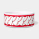 This pet bowl features red and white baseballs on a red background for a special sports fan's pet. Easily customize the name or just delete it.