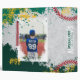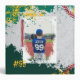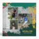 Unique personalized baseball card binder design for your baseball cards, or photo album. The design features a rustic grey concrete background with green and yellow grunge textures. Personalize the cover with three of your favorite photos along with your custom text. The spine is designed with red baseball stitching and the back features a single photo along with an optional player's number. Design by Moodthology Papery.