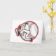 One of the most key players in baseball is the pitcher and here is a wonderful design of a baseball pitcher in action. He is ready to throw his pitch and has a background of a giant baseball which the pitcher looks like he is coming out of. This baseball pitcher looks great on these greeting cards