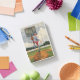 I was super excited when I got my cover in. It is attached by a magnet across the edge. I don’t think it will be very protective but it is very cute. I’m going to keep my iPad in a sleeve and use this face cover while I have it out. It folds to create a tilt for better viewing and to keep the iPad at a slight angle for typing. The colors are bright and it is fun. I’ve really enjoyed it. The personalization looks like amazing. It is the same color as the picture and is the same brightness. Well done! Very nice.