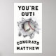 Baseball themed graduation congrats banner for senior class grad. To personalize, edit text to add baseball player's name and year of graduation.