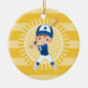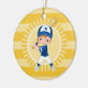 This design features a cute red headed baseball player in navy blue jersey with baseball bat on a yellow background.