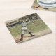 Baseball Player Thrown Out at Second Base Square Paper Coaster