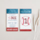 Baseball 1st Birthday Invitation - A Rookie of the Year Celebration for your one year old. Sized at 4x8 as a ticket style invite in vintage red and blue jersey look. Perfect first birthday theme for your little slugger. Includes a personalized back design.