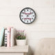 The size of the clock is dramatic and the abstract alcohol ink design is soothing and intricate at the same time. I chose the black frame that adds pop to the blue and gold design. The gold printing would be better in a slightly darker or larger font. I love it and I’m looking for just the right place in ny new apartment. I would recommend this clock for a personal gift or a present. I feel that the quality is excellent for the money! I’m a bit of a clock nut so I’m pretty particular about my purchases. The clock is larger in diameter than many if the clocks I have, so it stands out very well. I think a slightly darker printing color and a moderately larger size would best suit a professional decor or add more impact in a work place item.